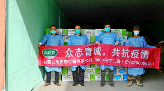 20、常務(wù)理事單位-內(nèi)蒙古高原杏仁露有限公司:近日,內(nèi)蒙古高原杏仁露有限公司向玉泉區(qū)捐贈了價值12萬余元的高原杏仁露,本次捐贈表達了對所有抗疫工作人員的熱切關(guān)懷和暖暖情意,感謝所有逆行者“疫”無反顧的擔(dān)當(dāng)與堅守。